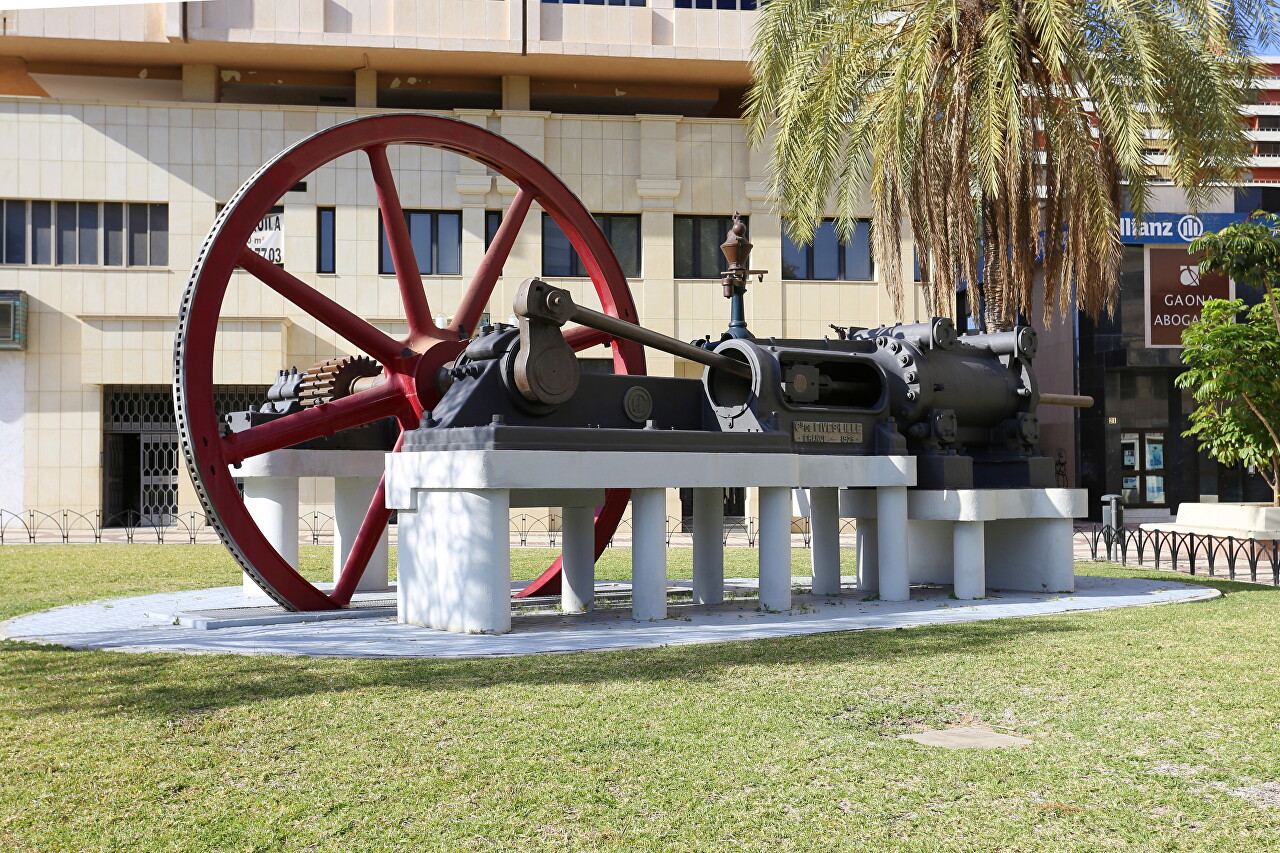 Avenida Aurora led me to a small green space located near the Puente de las Américas Bridge, which crosses Avenida Andalucía. The park is named after the famous artist, and a monument to him stands there. The park also features several modern avant-garde metal sculptures, as well as a factory steam engine from the industrial era.